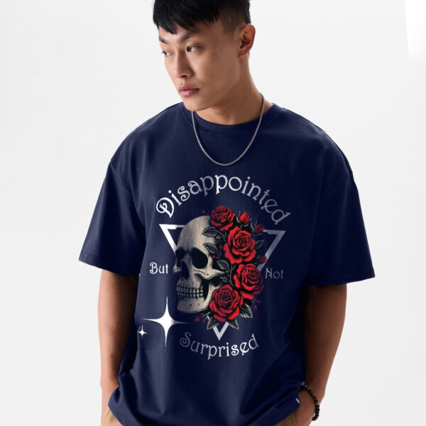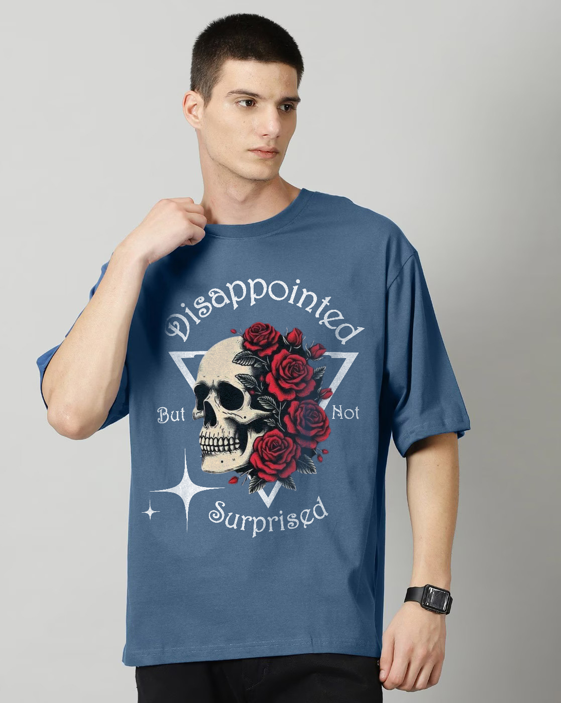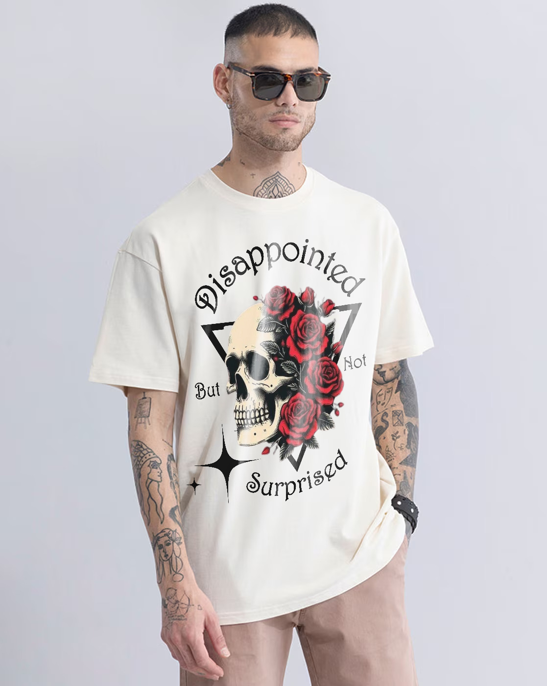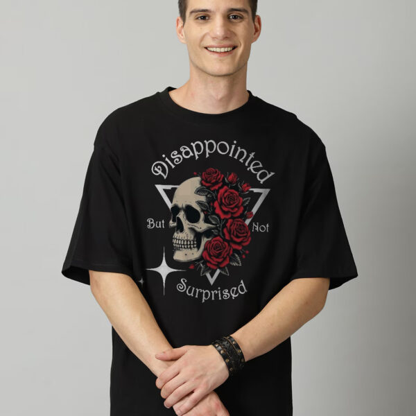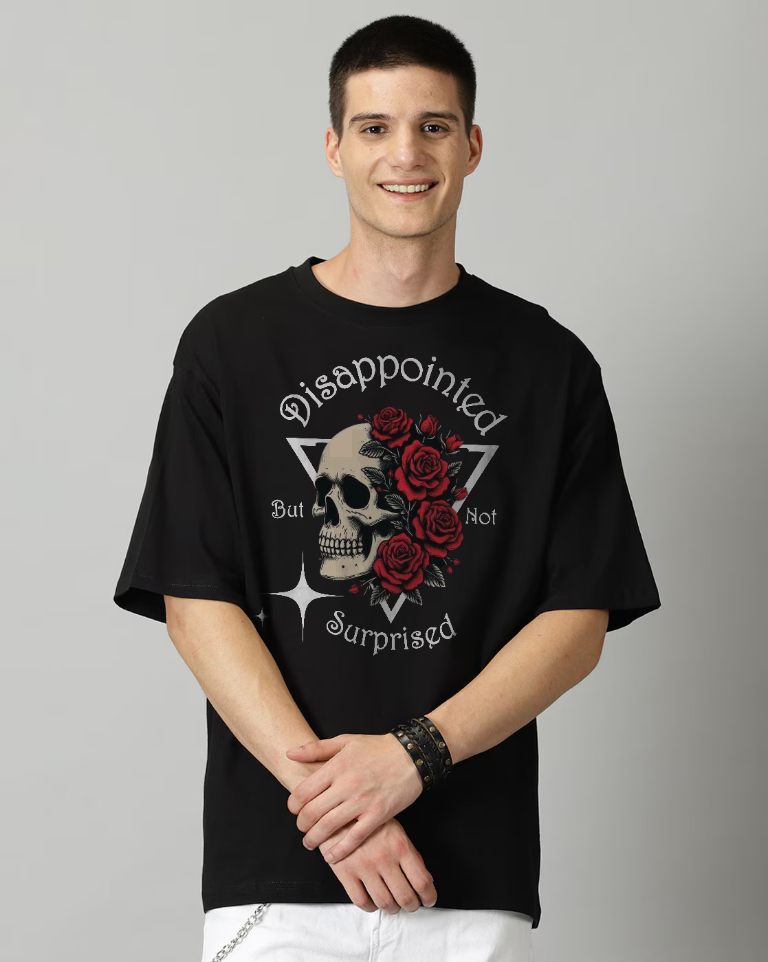 This oversized tee captures a mood we all know too well — disappointed, but not surprised. Featuring a striking skeleton face paired with a red rose graphic, it blends emotional realism with rebellious art. Made from premium bio-washed cotton, the tee offers breathable comfort and a relaxed drape. Perfect for casual days, gigs, or late-night hangouts — wear your mood in style and let your outfit do the talking.