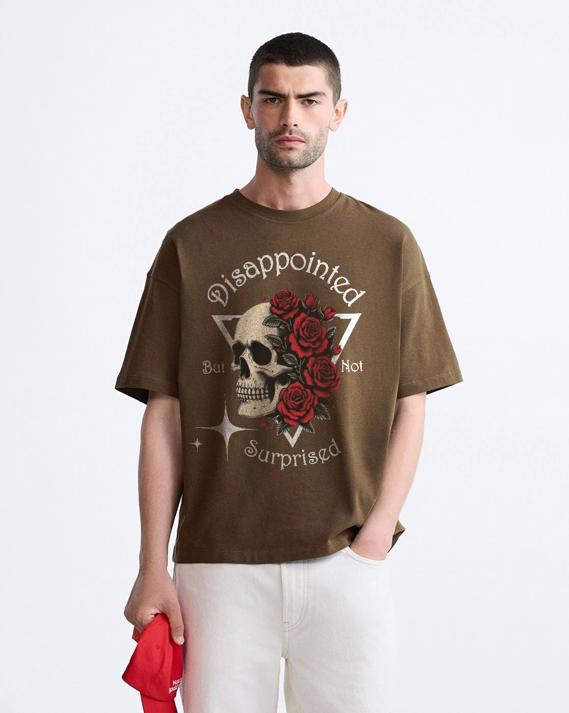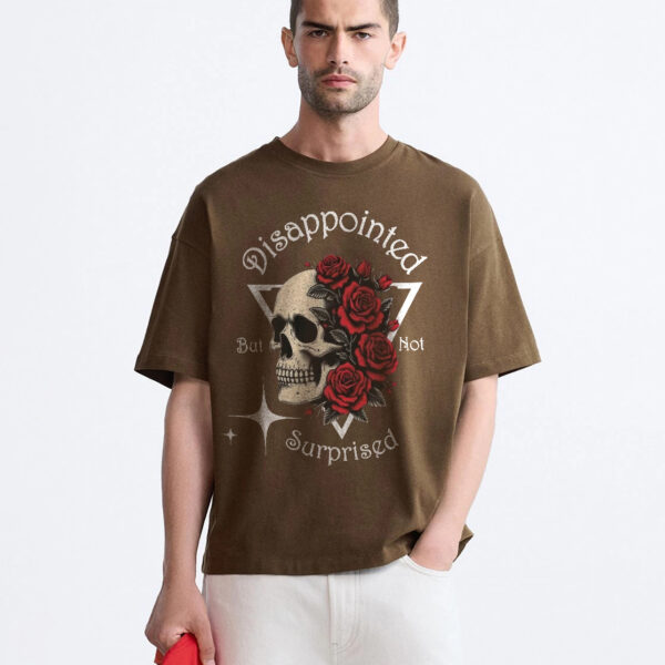 Embrace the calm chaos — “Disappointed But Not Surprised” brings dark humor and raw attitude together in a bold streetwear look.