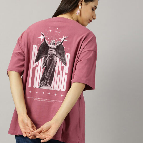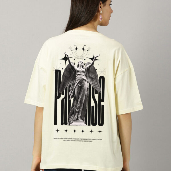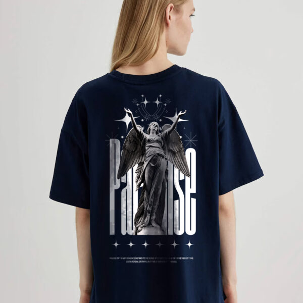 The Paradise oversized T-shirt is a statement of beauty and power. Featuring a stunning back print of a woman–angel (pari) statue with bold PARADISE text, this tee captures an ethereal yet edgy vibe. Made from premium bio-washed cotton for cloud-soft comfort, it offers a relaxed, free-flowing fit that moves with you. Perfect for pairing with baggy jeans or shorts — this one turns casual wear into street art.