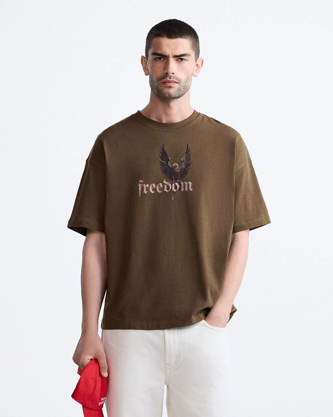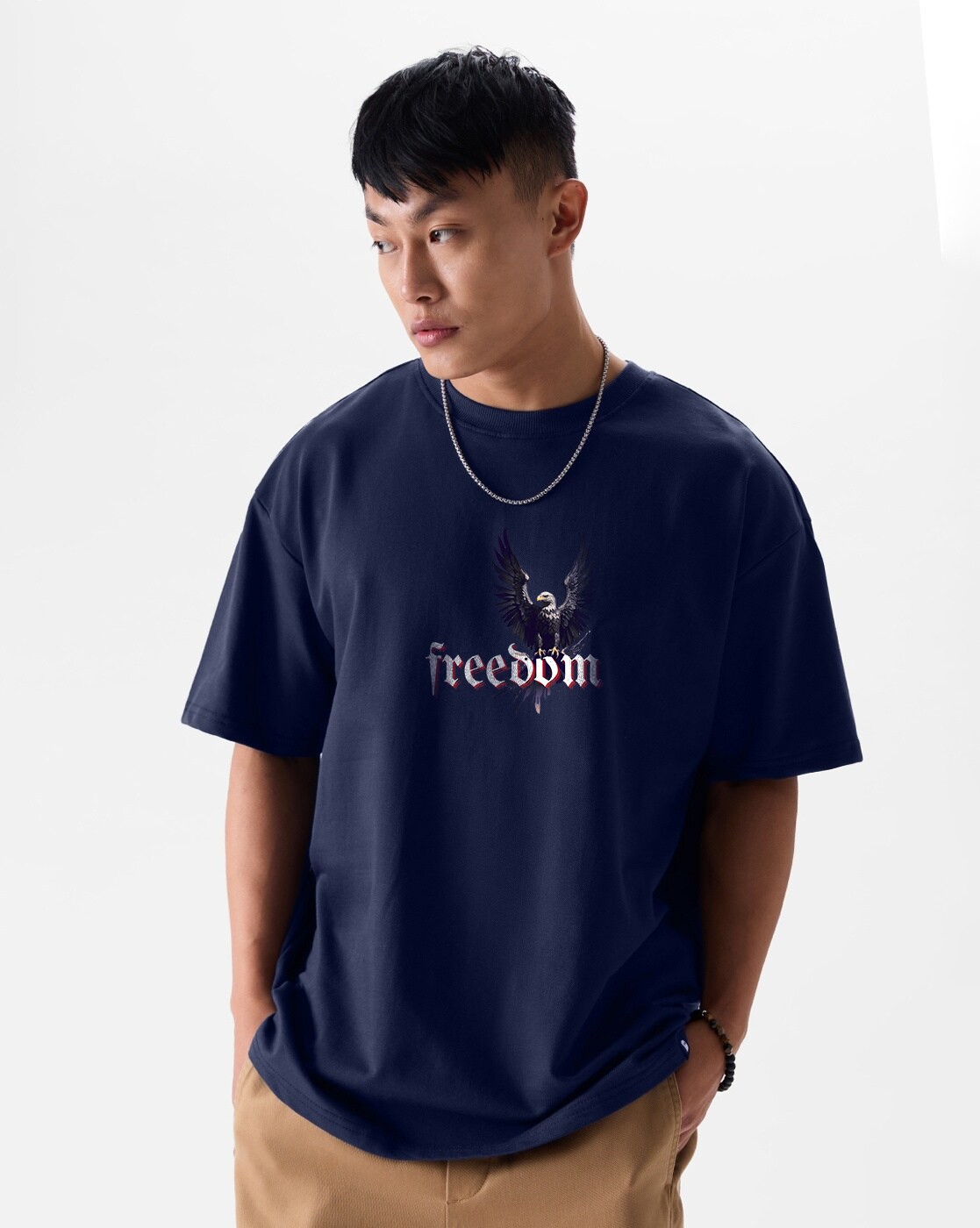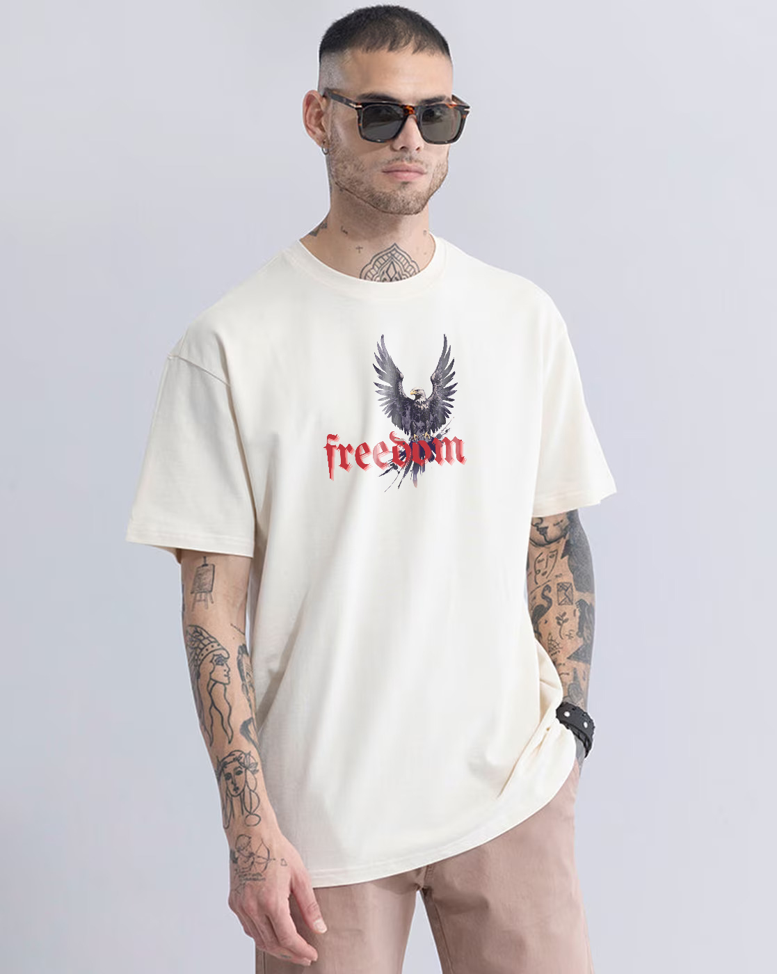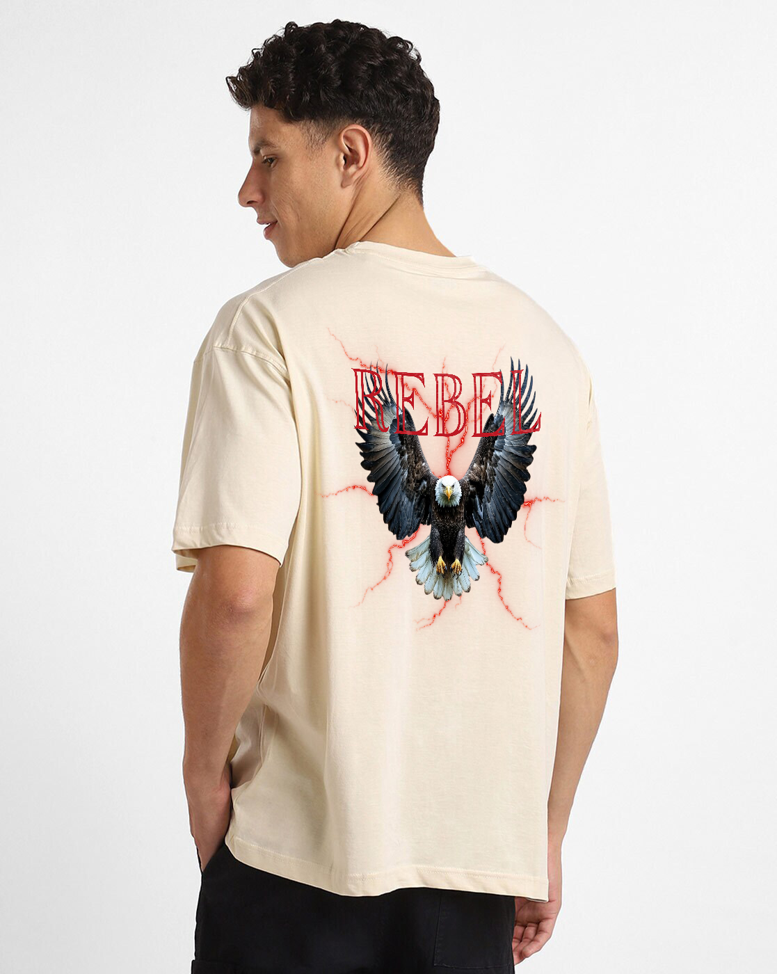 Bring the chaos and courage together in the Rebel Freedom oversized T-shirt. Featuring a fierce eagle with red electric detailing on the back and a powerful Freedom graphic on the front, this tee captures the true spirit of rebellion. Crafted from premium bio-washed cotton for all-day comfort, its relaxed fit gives you that effortless streetwear silhouette. Perfect for statement-making looks — pair it with ripped jeans, cargos, or sneakers and rule the street in style.